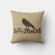 Un coussin de Halloween de regard de toile de jute avec un corbeau noir et le mot plus jamais là-dessus.