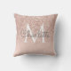 Élégant coussin de jet à monogramme rose gold et rose blush. Conçu par Thisisnotme©