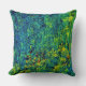 Coussin de jet en polyester avec fleurs vertes jaunes . Peinture abstraite de la nature.