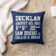 Personnalisez la chambre de votre petit garçon avec ce coussin spécial imprimé sur mesure qui présente toutes ses statistiques de naissance imprimées sur un riche arrière - plan bleu marine. Modifiez la police et le texte pour correspondre à votre style !