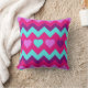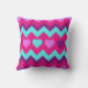 Coussin de l'adolescence turquoise rose d'accent de carreau de cadeaux de fille de coeurs mignons de Chevron avec un motif coloré et d'amusement des coeurs et rayures de zigzag de chevron avec le fuchsia de roses indien, le pourpre, et les couleurs turquoises de bleu de turquoise.