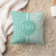 Conception primée turquoise et White Polka Dot Monogram Coussin. Personnalisez avec vos initiales.