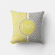 Coussin de monogramme de Polka Jaune et Gris