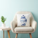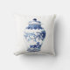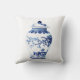 Ce coussin comporte un pot bleu et blanc classique de gingembre de porcelaine basé sur un objet façonné chinois antique. D'une gouache originale/encrez la peinture par l'artiste Anne Harwell
