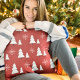 Coussin décoratif de Noël rouge avec silhouettes de pin blanc et flocons de neige