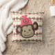 Coussin Peace Monkey avec beaucoup de petits singes bruns avec des casquettes roses et un grand singe avec un casquette rose portant un symbole de paix.