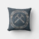 Géologue - coussin de style collégial, en lettres et marteaux de roche croisés dans la rouille et le gris en détresse.