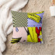 Célébrez l'art de bruit et les couleurs vibrantes avec ce coussin inspiré par Roy Lichtenstein.