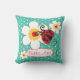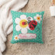 Coussin lumineux de vert, de rouge, jaune et blanc d'aqua de filles de nom, comportant des coccinelles et des fleurs conçues par exclusivement par Sarah Trett. Customisez avec votre nom, cet exemple lit Bella Ava. Soyez un grand supplémentaire à l'aqua de l'enfant/à chambre à coucher orientée de rouge ou de nature à aider à personnaliser leur espace.