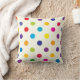 Carreau de point de polka de sucrerie. Fabriqué aux Etats-Unis. Coussin de coton avec un motif de point de polka dans des couleurs de sucrerie sur la crème.
