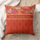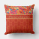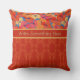 Un Oreiller ou un coussin chic pour personnaliser, avec des pavots orange, jaune et rose sur un arrière - plan Sky Blue, en équipe avec un motif rouge damassé coordonné. Ce design floral et lumineux fait partie de la collection Posh & Painterly "Poppy Fields".
