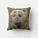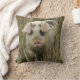 Ce magnifique coussin présente une belle photo d'un mignon cochon rose émergeant d'une grande herbe.