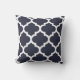 Coussin marocain de treillis de bleu marine. Fait dans les carreaux décoratifs des Etats-Unis avec un motif géométrique de quatrefoil dans des couleurs contemporaines.