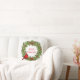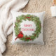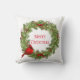 Ce coussin de vacances est présenté avec une couronne de fruits de Noël festif et imprimé cardinal. Customisez cet objet ou achetez tel quel.