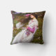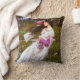 Coussin de Windflowers de John William Waterhouse. Peinture à l'huile sur la toile à partir de 1902. Le Pre-Raphaelite John William Waterhouse a fréquemment peint des thèmes littéraires, et les Windflowers est un bel exemple de la fascination perpétuelle de l'artiste avec les héroïnes poétiques. La peinture comporte une jeune femme avec les cheveux noirs foncés se tenant dans un domaine des fleurs sauvages comme fouets de vent à travers la scène. Elle porte une robe blanche avec les douilles, la jupe et piquer pourpres. Dans son tablier elle porte les fleurs de rose, pourpres et rouges qu'elle tient étroitement contre le vent. Un grand cadeau pour des fans de J.W. Waterhouse, les Pre-Raphaelites, et peinture romantique anglaise.