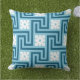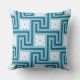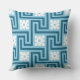 Clé grecque Art Déco ou labyrinthe motif lancer l'oreiller dans le bleu ciel doux et bleu foncé marine / indigo, accentué de blanc