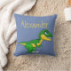 Les dinosaures sont de retour. Les créatures jurassiques sont de retour un mignon oreiller à lancer personnalisé. Le dinosaure est vert et jaune. Le texte est dans une amusante jeune Personnaliser de typographie et le faire à vous. Un cadeau spécial pour une petite chambre pour garçons.