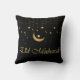 Caractéristiques des lumières de Ramadan Eid et une typographie Eid Mubarak dorée sur fond noir, de belles décorations modernes de Ramadan et d'Eid pour la maison ou la fête. Décoration de coussin Eid par Arabix.