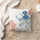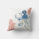 Coussin Décor Plage Rouge Ventilateur Corail Bleu Octopus