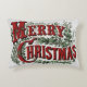 Décorez pour Noël avec ce coussin de style vintage des années 1800 avec les mots "Joyeux Noël" dans une belle police rouge classique et un arrière - plan de dessin à l'ancienne de feuilles verts. Imprimé à l'origine en 1876 et coloré par Vintage American.