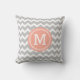 Les rayures de corail élégantes et modernes de pêche, grises et blanches de chevron de zigzags modèlent le carreau décoratif de monogramme fait sur commande. Entièrement personnalisable, ajoutez votre propre initiale pour un article à la maison véritablement unique de décor.