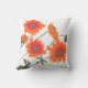 Un coussin stylisé unique et lumineux aux couleurs complémentaires orange, vert olive et blanc représentant un pavot. Conçu de manière unique par Sarah Trett. Aura fière allure dans une chambre ou une pièce d'été.