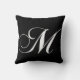 Coussin blanc noir du monogramme M. Cette police élégante de remous transforme votre initiale de monogramme en coussin décoré d'un monogramme élégant de concepteur. Grand pour votre chambre à coucher, chaise préférée, comme décor d'amusement dans votre chambre familiale ou addition décorative formelle à votre salon. Personnaliser avec votre couleur d'arrière - plan. Pour d'autres lettres de l'alphabet entrez en contact avec svp MONOGRAMGALLERY. Elke Clarke©