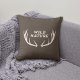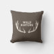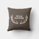 Un coussin marron avec une illustration de bois de cerf et un texte entièrement personnalisable : "Wild Nature" dans le style rustique ! Ajoutez une touche de nature sauvage à votre décor maison!