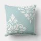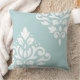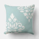 Coussin Défiler Damas Art I Blanc sur Canard Oeuf Bleu (B)