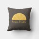 Un coussin marron avec une demi-tranche citron jaune et du texte personnalisable. Il peut être utilisé pour votre décoration de maison ou comme cadeau à un amoureux d'agrumes!