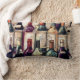 Jetez l'oreiller avec un imprimé de bouteilles de vin sur l'avant et une couleur solide de bronzage sur le dos.