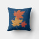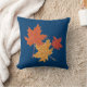 Un coussin assez bleu foncé avec des feuilles d'automne.