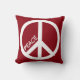 Un coussin rouge avec un grand panneau de paix blanc et un texte personnalisable. Gardez le mot paix ou ajoutez un nom à la place !