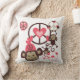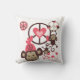 Le coussin Peace Monkeys présente de mignons petits singes bruns qui balancent et jouent avec des symboles de paix, des coeurs et un singe qui porte un casquette rose !