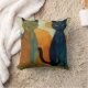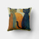 Une vision impressionniste et attrayante de deux chats stylisés de couleur bleu et vert rouille sur un oreiller à lancer.