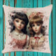 Coussin Deux filles Vintage poupée coeur Whimsical