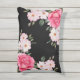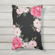 Coussin D'extérieur Aquarelle Vibrant rose Roses blanches Moderne Noir