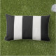 Ce coussin lombaire extérieur est doté d'un motif de cinq larges bandes verticales en noir et blanc.