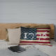 Vintage Grunge Style American Flag 1776 Coussin Lumbar intérieur/extérieur. Décorez votre patio ou votre porche avec ce drapeau patriotique des États-Unis, avec un côté _1776_ en blanc vieille typographie anglaise [ou Personnalisez avec le nom de famille]. La Constitution est bien vivante. Fait un grand cadeau de ménage! Aimez l'Amérique, aimez la liberté. Rouge, bleu marine, et off White Stars and Stripes. Arrière - plan américain.