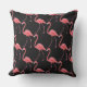 Cet oreiller extérieur est montré en noir avec une empreinte de flamants tropicaux. Customisez cet objet ou achetez tel quel. Image stock