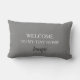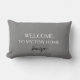 Rustique gris Bienvenue dans ma petite maison, monogrammed, lumbar coussin extérieur. Vous pouvez le personnaliser et modifier le texte, le devant et le dos et ajouter votre propre nom.