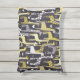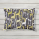 coussin extérieure de 12 x 16 pouces avec une image, de part et d'autre, de girafes jaunes, violettes, grises et blanches, certaines aux coeurs blanc, jaune ou violet, au charbon de bois. Voir l'oreiller à lancer rond correspondant. Voir toute la collection de Coussins Safari dans le DÉCOR| Section Coussins.