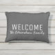 Coussin bienvenu gris-foncé rustique moderne de nom de monogramme de famille.