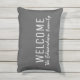 Coussin D'extérieur Monogramme bienvenu gris-foncé rustique moderne de