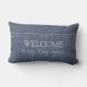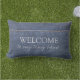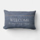 Bleu rustique faux denim Bienvenue à ma petite maison Lumbar Coussin extérieur. Vous pouvez facilement ajouter votre propre texte pour personnaliser.