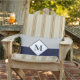 Coussin D'extérieur Nautique moderne Marine bleu gris monogramme lance