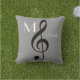 Coussin D'extérieur note de musique de clef de treble gris monogrammé