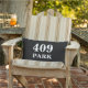 Ajoutez un peu de flair à votre espace patio avec ce coussin simple et moderne en noir et blanc et adresse municipale ! Personnalisez avec les détails de votre maison. La couleur arrière - plan du coussin peut être changée selon vos préférences. Fait également un élégant cadeau de ménage!