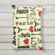 Paris design de texte pour la Saint-Valentin aux formes coeur rouge, Tour Eiffel et lampes de rue décoration arrière - plan jaune