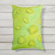 Ce Coussin à Accent extérieur/intérieur présente une photo originale et abstraite de ZoeSPEAK de gouttes de pluie sur une feuille. Sur la photo closeup, on voit la texture et les veines de la feuille magnifiées dans les contours des gouttelettes d'eau. La feuille verte jaune brillant reflète le bleu et le jaune du ciel et de la lumière du soleil.